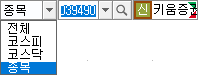 종목검색을 원하는 시장을 선택합니다.