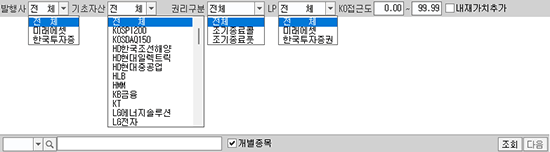 [발행사] [기초자산] [관리구분] 등 조회조건을 지정합니다.