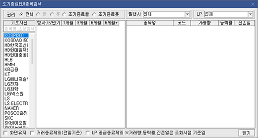 버튼을 클릭하면 [조기종료ELW종목검색] 창이 팝업됩니다.