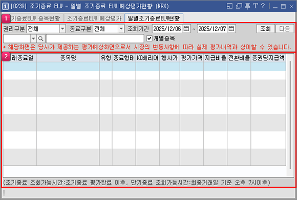 거래종료일별 조기종료 ELW 예상평가현황을 확인할 수 있습니다.
