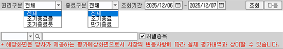 [개별종목] 항목을 선택하면 원하는 조기종료 종목 정보를 확인할 수 있습니다.