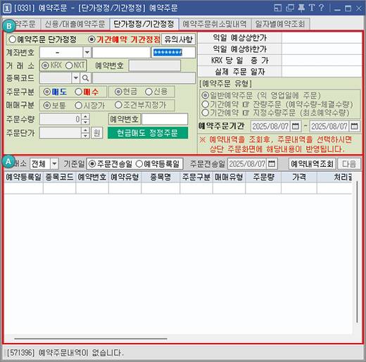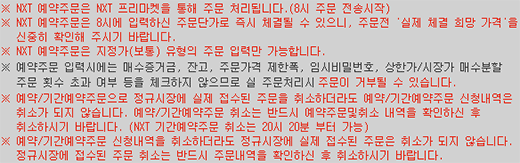 예약주문시에는 주문가능수량, 상한가 등을 체크하지 않고 증권사에서 주문을 제출할 때 체크하므로 예약주문이 입력되었어도 실제 주문이 실행되지 않을 수도 있음을 유의하십시오.