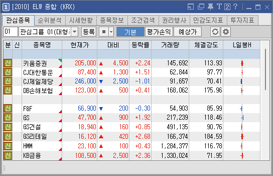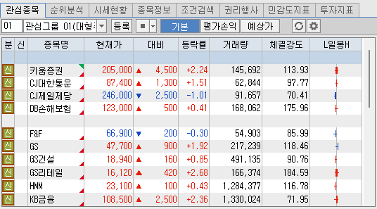 관심종목 및 시세분석 탭