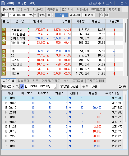 [ELW] 탭과 [KOSPI200] 탭을 선택할 수 있습니다.