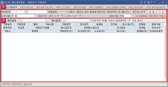 계좌를 선택하고, 조회조건을 지정한 후 [조회] 버튼을 클릭합니다.