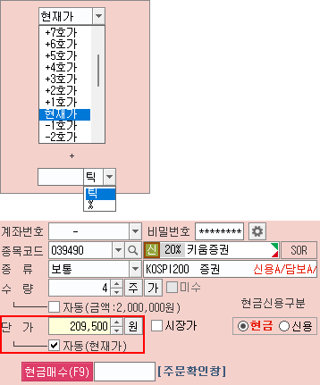 [자동(현재가)]에서 (현재가) 항목은
