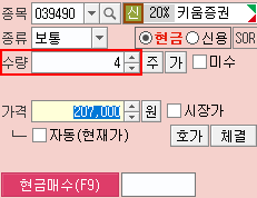 [매수] 주문의 [종목변경시 주문가능수량]