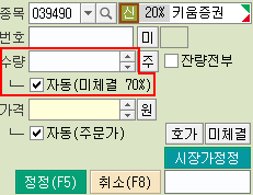 [정정/취소] 주문 시 미체결수량의 %가 [수량]으로 자동입력됩니다.